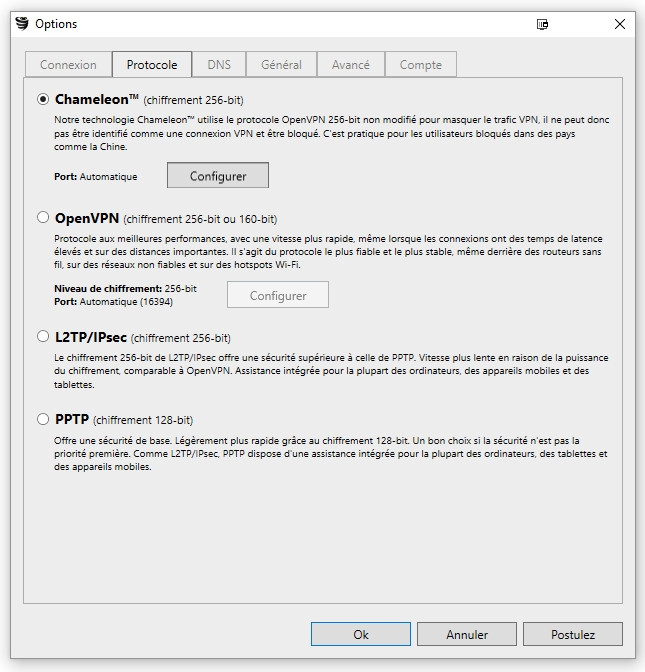 Le choix du protocole est aussi important. Le plus fiable à l'heure actuelle est OpenVPN. Si de nombreux VPN utilisent encore PPTP, ce protocole est peu fiable et âgé. Évitez donc les VPN qui ne s'appuient que sur lui.
