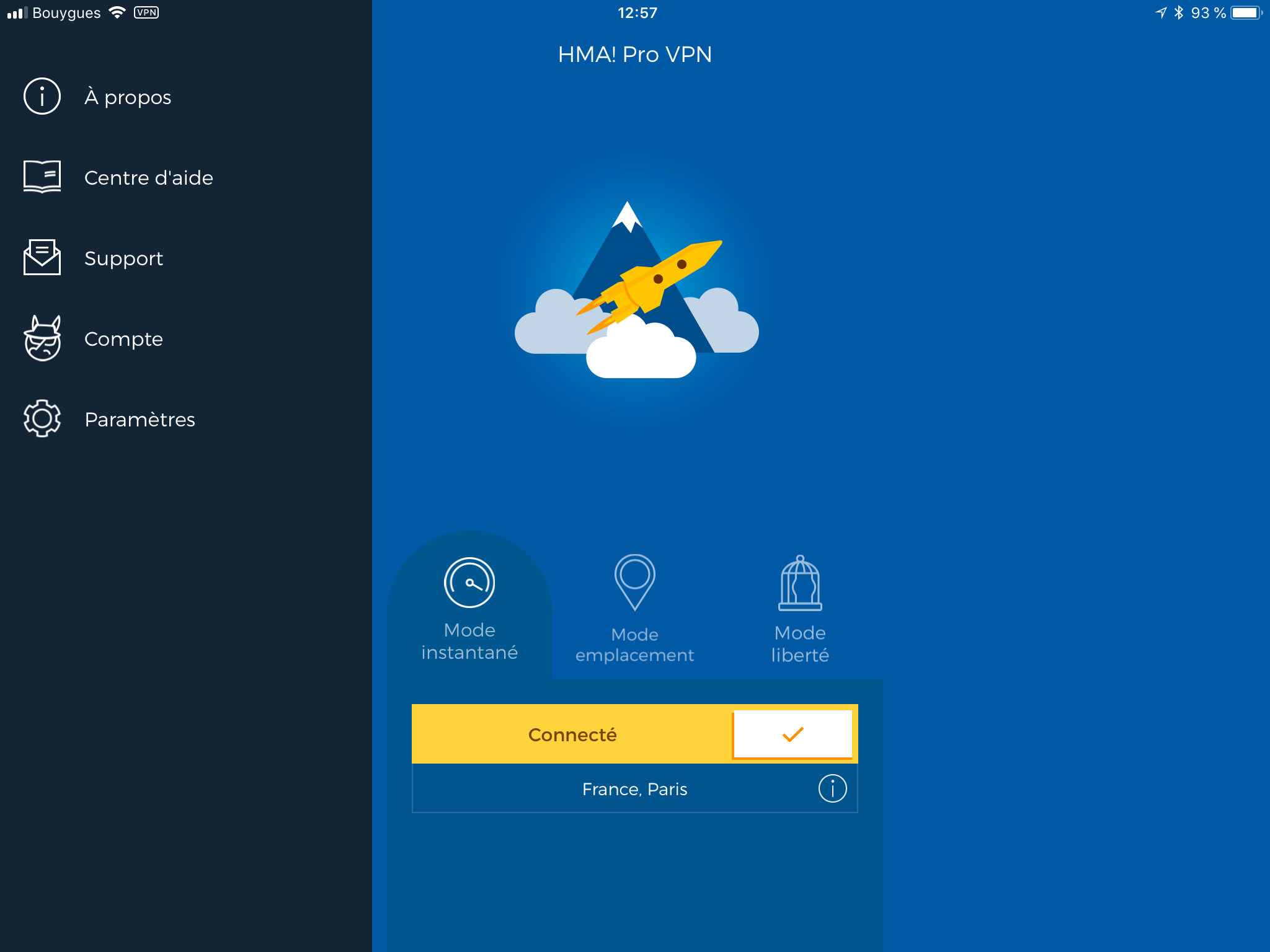 Même si l'interface du client VPN n'est pas traduite, le service s'avère très simple à utiliser. Mention spéciale pour l'application mobile plus intuitive et moderne que celle pour ordinateur qui fait au contraire un peu vieillotte.