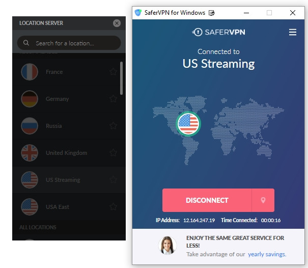 | SaferVPN | + Jusqu'à 5 appareils + Réseau fiable et véloce + Serveur USA dédié au streaming - Paramétrages limités - Tarifs élevés | Voir l'offre |