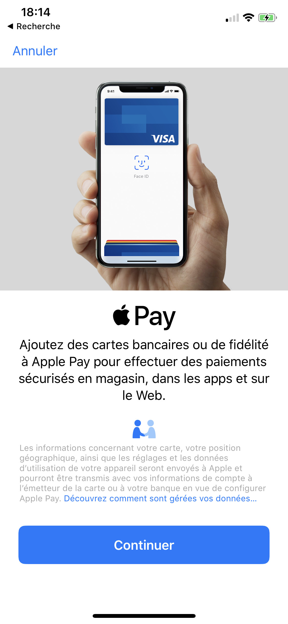 Si Apple Pay est probablement le service de m-paiement le plus connu, les banques françaises commencent à peine à lâcher la bride le concernant. Actuellement, seuls les détenteurs d'une carte émise par la Banque Populaire, Boursorama, Caisse d'Épargne, Fortuneo, Société Générale ou N26 peuvent utiliser le service. La liste est régulièrement mise à jour au gré des politiques des établissements bancaires.Ensuite, votre banque vous demandera de confirmer la requête d'ajout de votre carte bancaire à Apple Pay. Suivez les instructions et... voilà. Tout est prêt !