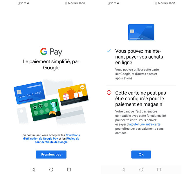 Si la curiosité vous pique au point de vouloir installer l'application sur votre mobile, il vous faudra passer par un portail de téléchargement d'APK, comme APK Mirror. Une fois l'application en poche, lancez-là et renseignez votre compte Google.Vous arriverez très vite sur l'écran d'ajout d'une carte bancaire. Pour le moment, seules les cartes MasterCard de la fintech Revolut sont prises en charge. L'ajout d'une carte Visa Revolut est possible, mais le paiement en magasin vous sera refusé ; elle ne pourra servir que pour les paiements en ligne.