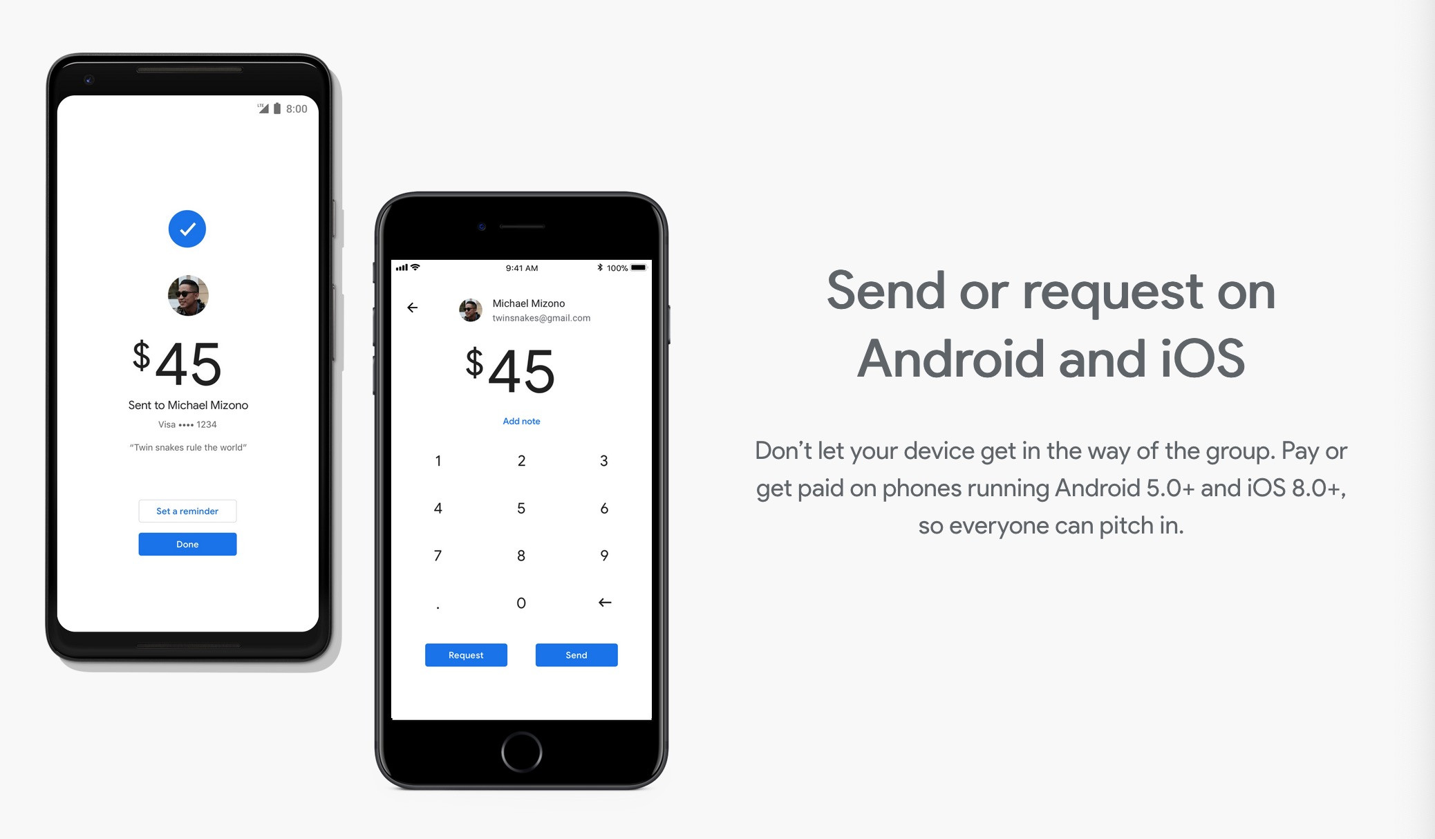 Mais l'une des autres possibilités offertes par le service de Google est le paiement entre amis. Pratique pour se rembourser les courses du barbecue. Vous pouvez ainsi envoyer des requêtes de remboursement, ou un paiement à n'importe qui, pour vu qu'il est doté d'un smartphone Android ou iOS.