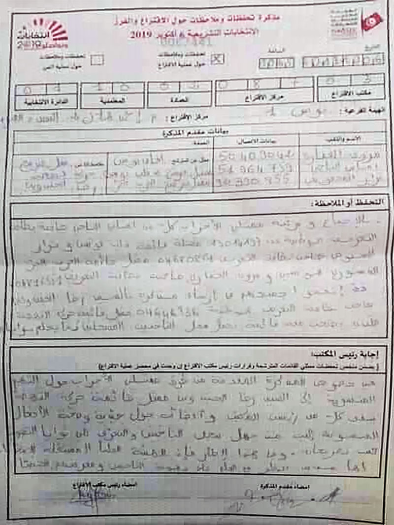 ومن المنتظر أن يتم رفع المحضر إلى هيئة الانتخابات للبت فيه.